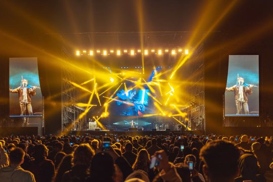 e il suono delle corde con la sensibilità del nostro tempo. La stessa idea la porta sul palco: una comunicazione sintetica e veloce ma non priva di profondità, in cui si balla e canta insieme al pubblico mentre sui ledwall scorrono i temi dell’amore per la natura e la